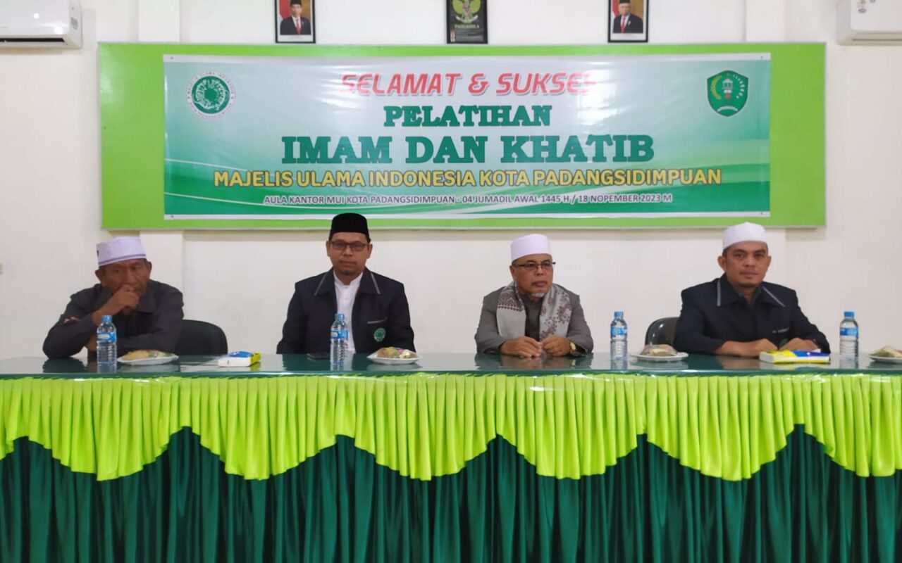 Padangsidimpuan, 18/11/2023. Dewan Pengurus Majelis Ulama Indonesia (DP MUI) Kota Padangsidimpuan menggelar kegiatan pelatihan yang memusatkan perhatian pada peran penting Khatib dan Imam dalam membangun fondasi keimanan masyarakat. Acara tersebut berlangsung pada Sabtu, 18 November 2023, di Aula Kantor DP MUI, mengundang para Ustad/Dai Muda serta Remaja Masjid dari berbagai lapisan masyarakat Muslim di Kota Padangsidimpuan.